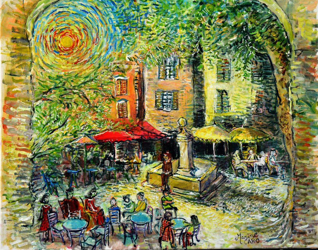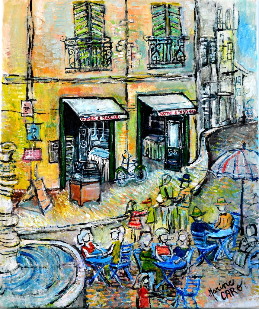 J’ai initié mon parcours artistique en peignant des scènes qui me sensibilisaient profondément. Le tumulte du festival d’Avignon a révélé que la peinture était la voie pour vivre intensément le théâtre. C’était une question de résonnance, de lieu et d’inspiration. Les ruelles, surtout les devantures des boutiques, étaient des tableaux vivants, constamment en mouvement avec des couleurs vives. Sous le soleil doré, les teintes vives se révélaient pleinement pendant les chaleurs estivales. Progressivement, j’ai orienté mon travail vers des sujets plus calmes, trouvant l’inspiration dans les formes sinueuses de la nature et leurs silhouettes automnales.
