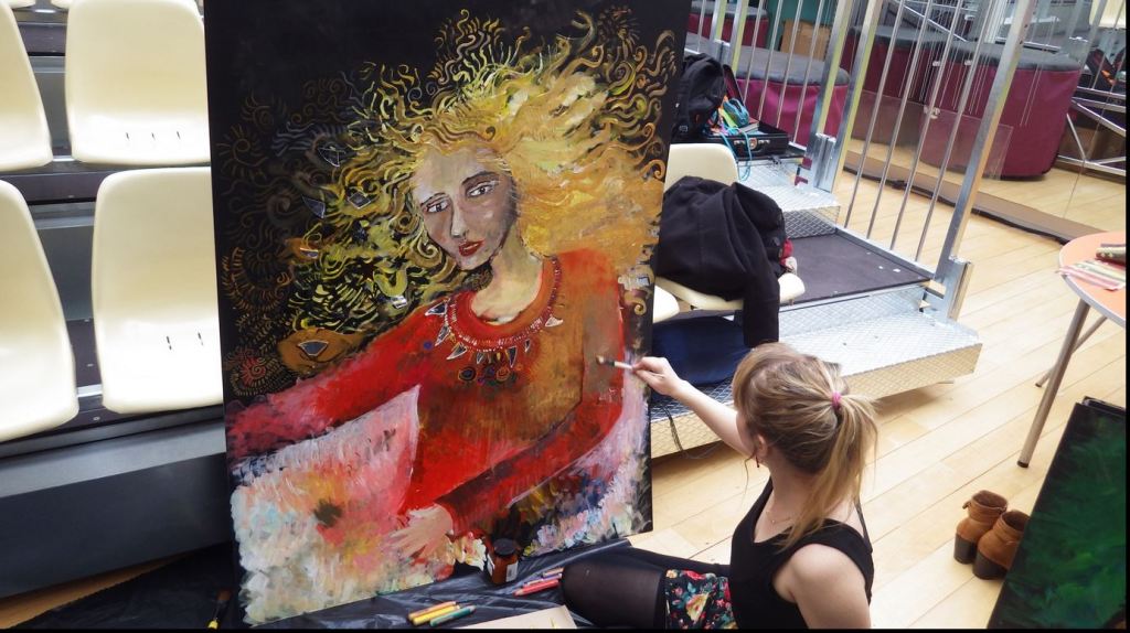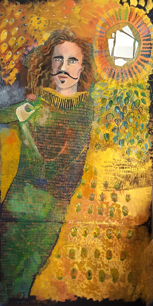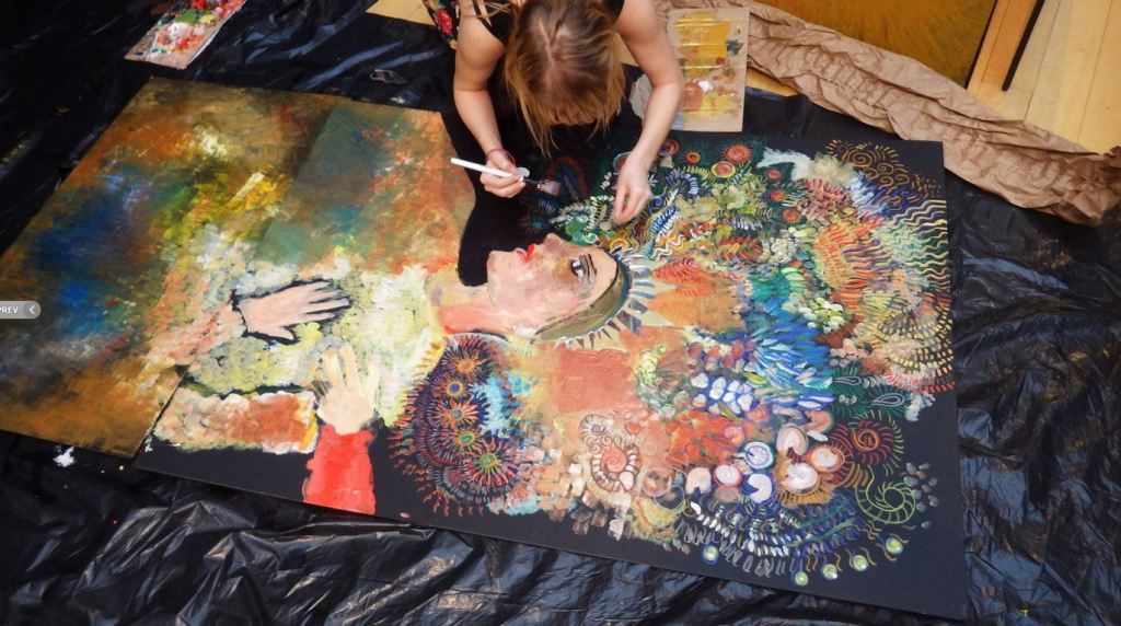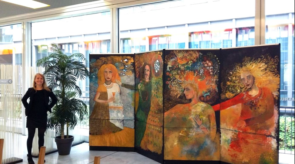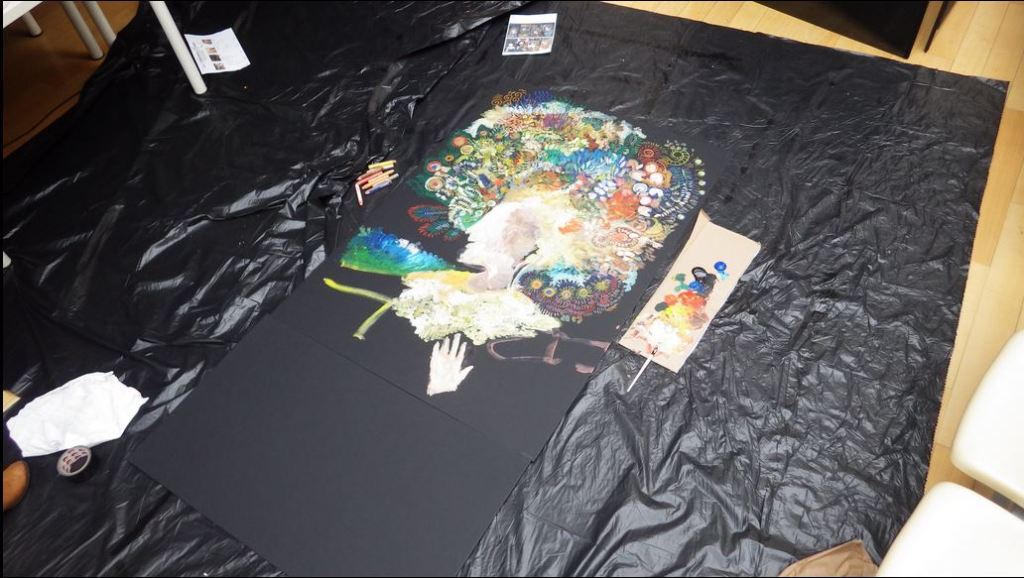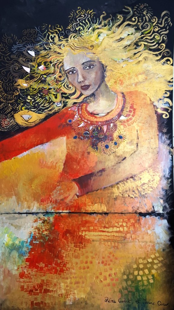La fresque est une œuvre collaborative avec l’architecte Rémi Godet qui a été exposée à Paris en 2015. La création intitulée « La déclaration d’amour » symbolise les vertus de l’amour universel et s’inspire du graphisme de Klimt par ces effets miroitants, ces parures dorées, puis ces visages portés par des corps légers parfois transparents. La composition est sous forme de quatre panneaux verticaux et représente les quatre allégories de l’amour : la force, la tempérance, la prudence et la justice. Les visages sont emprunts de personnalités célèbres notamment : Mnémosyne, Vélasquez, L’Ange Gabriel, et Sainte-Anne. Ainsi, les personnages se déclarent leur amour en migrant légèrement sur le panneau situé à leur droite. Enfin, le quadriptyque mesure 4 m x 2 m et a été réalisé en un temps record, en seulement cinq jours.