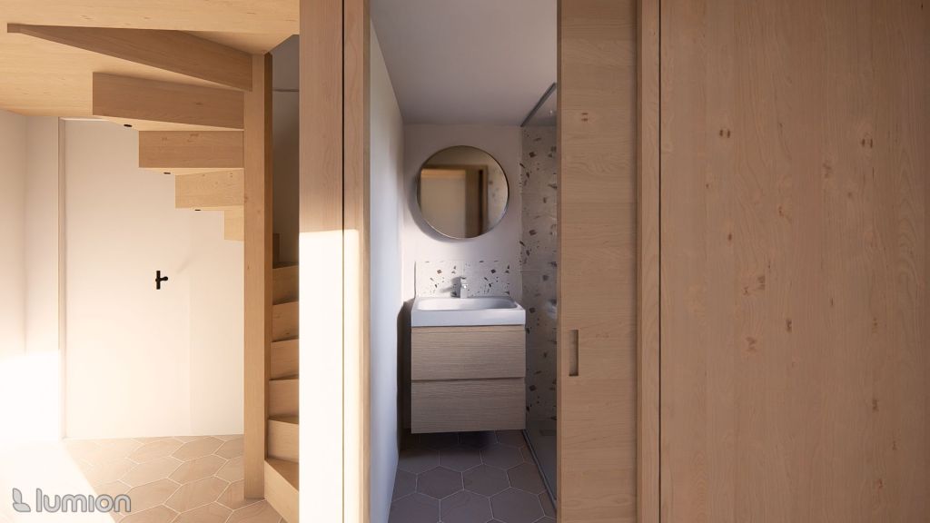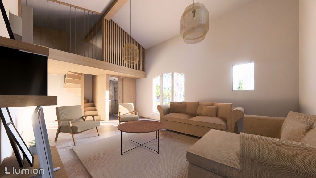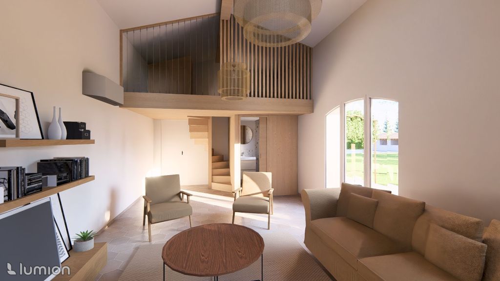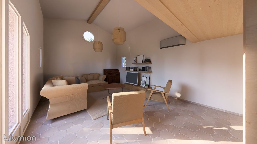 Projet d’extension d’une villa traditionnelle à Saint-Étienne-du-Grès, située en secteur sauvegardé. Utilisation de tuiles canal, d’un enduit à la chaux de couleur sable gratté fin, de volets en bois de teinte vert olive à lames horizontales, d’un rang de génoise, de menuiseries cintrées en bois avec petits bois mortaisés et d’un soubassement plein de 60 cm. Appuis de fenêtres en pierre et œil-de-bœuf.