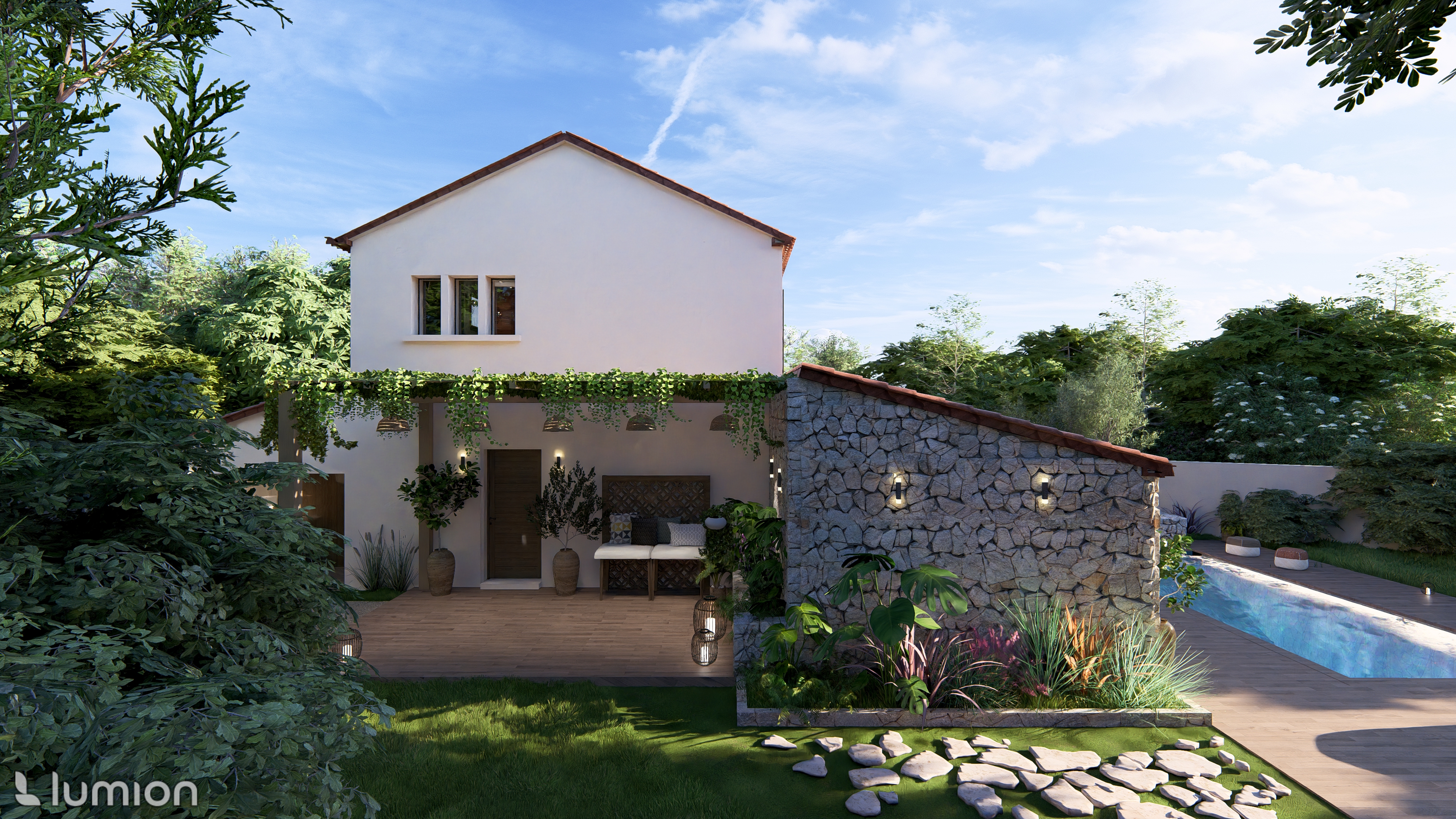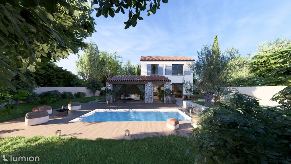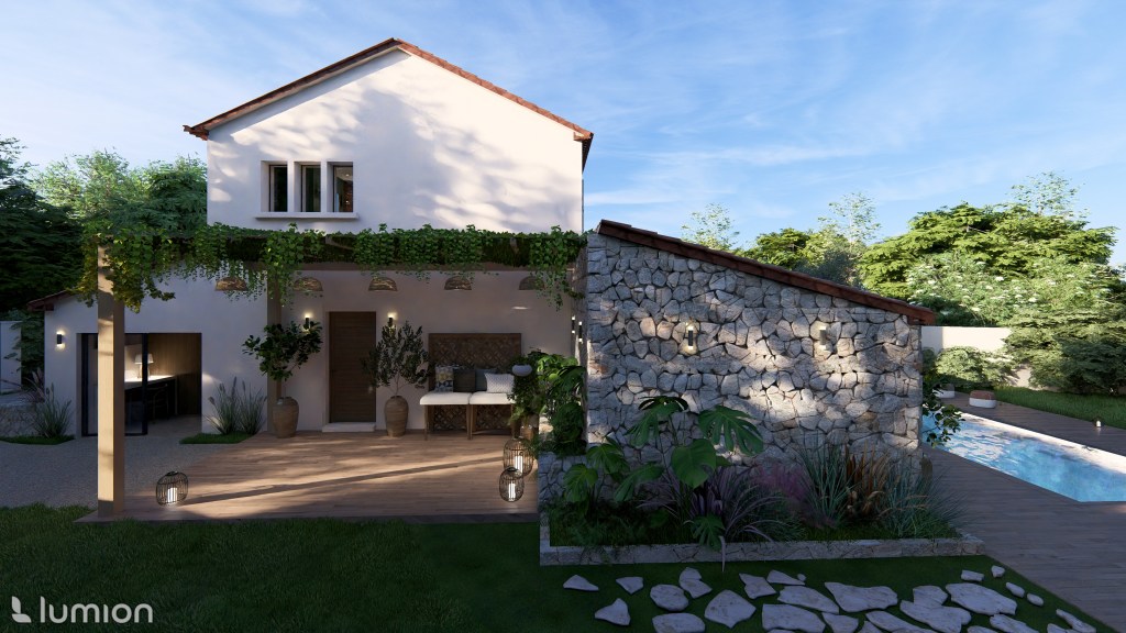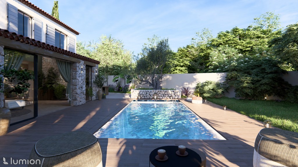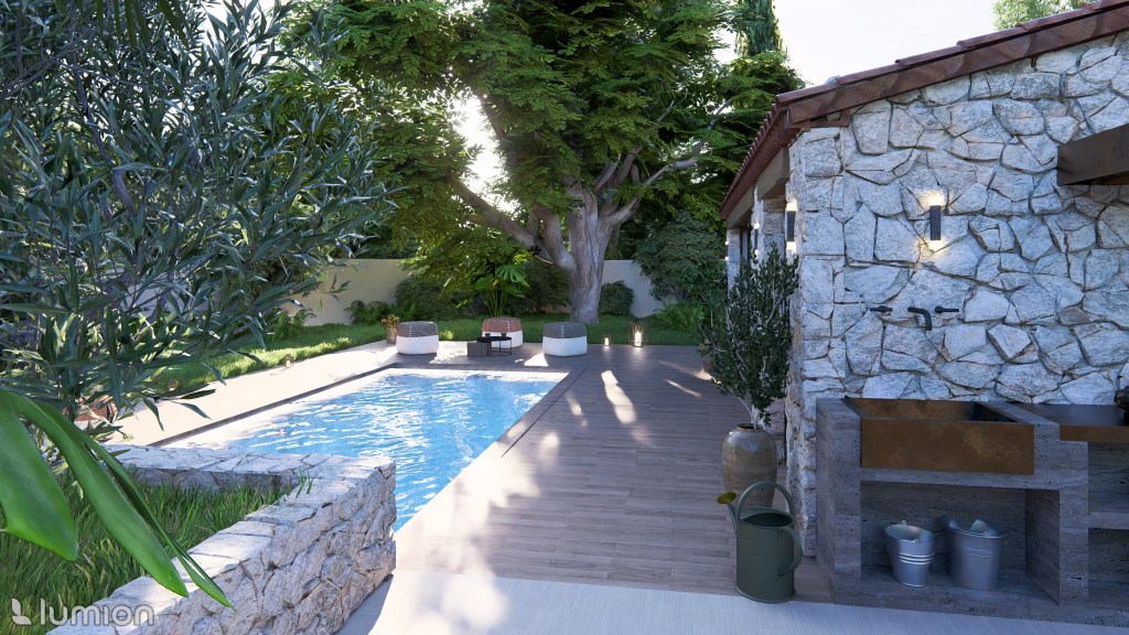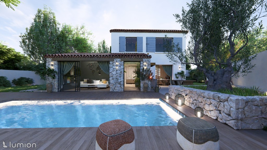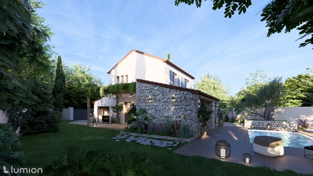 Projet d’extension d’une maison individuelle pour la création d’un espace convivial dédié à la lecture. La construction sera habillée de pierre et dotée de larges parois vitrées, offrant une ouverture sur la piscine, le jardin et l’orientation sud. Aménagement d’une piscine avec une terrasse en pierre de type travertin, accompagnée d’un olivier et d’un muret en pierre sèche calcaire, pour une intégration harmonieuse dans l’environnement. Ce projet a été réalisé avec mon amie Juliette Wieruszewski.