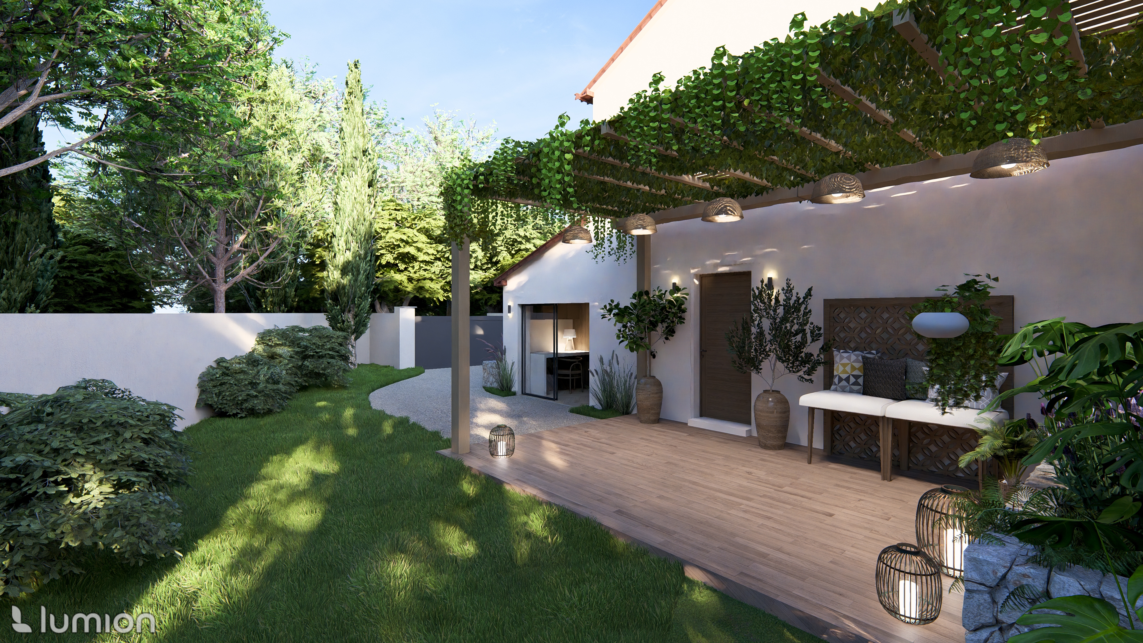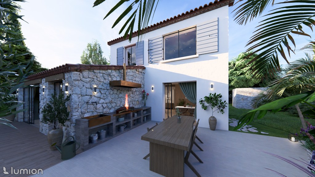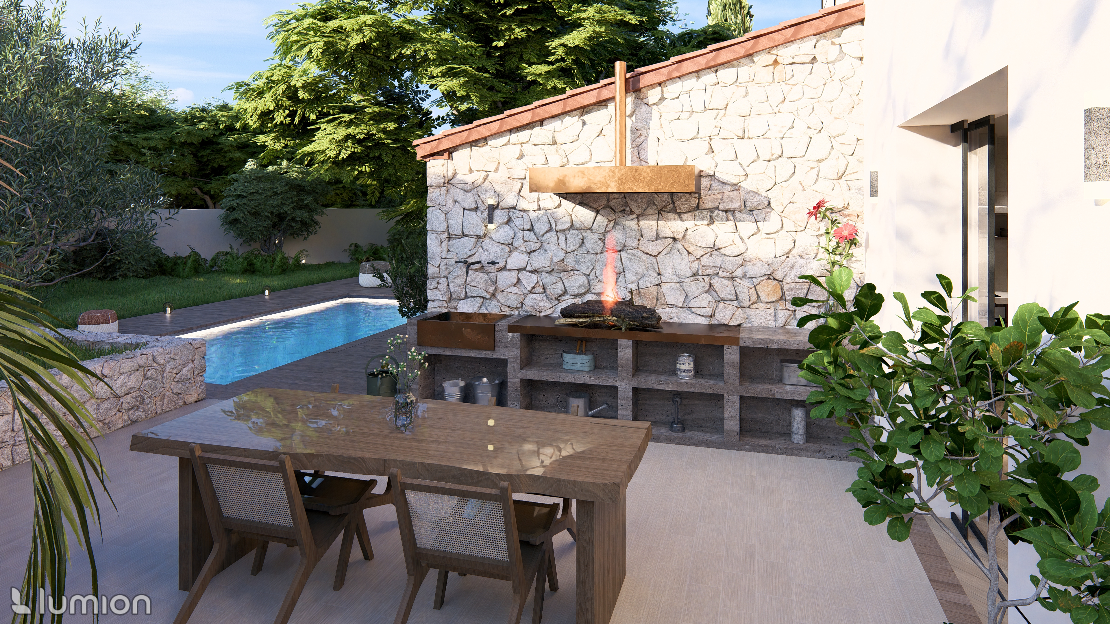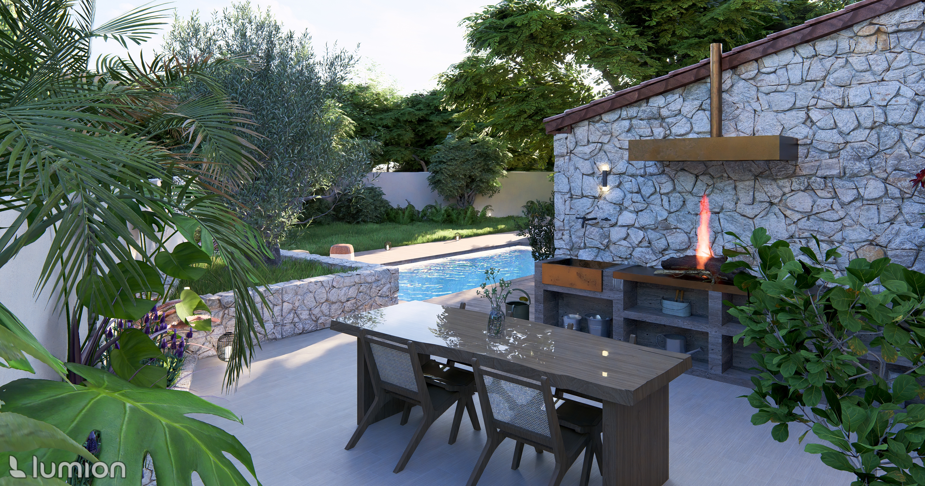 Projet d’extension d’une maison individuelle pour la création d’un espace convivial dédié à la lecture. La construction sera habillée de pierre et dotée de larges parois vitrées, offrant une ouverture sur la piscine, le jardin et l’orientation sud. Aménagement d’une piscine avec une terrasse en pierre de type travertin, accompagnée d’un olivier et d’un muret en pierre sèche calcaire, pour une intégration harmonieuse dans l’environnement. Ce projet a été réalisé avec mon amie Juliette Wieruszewski.
