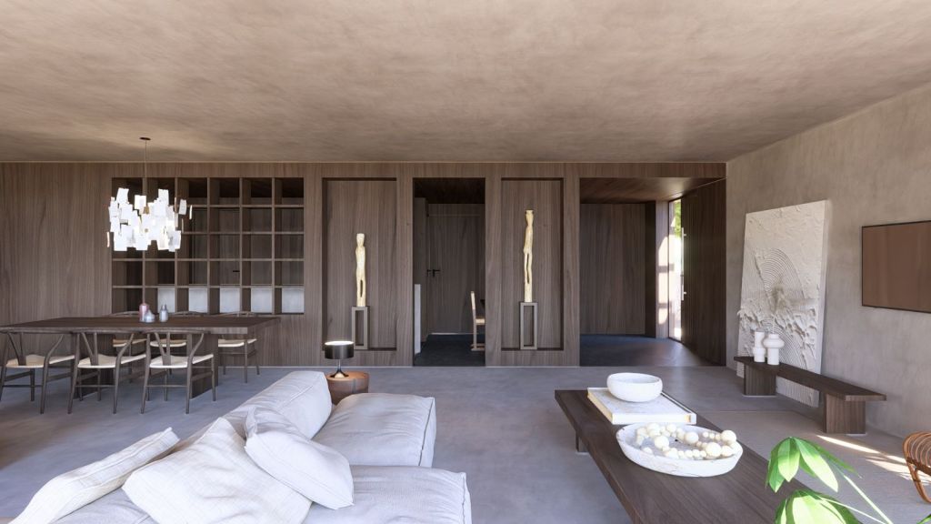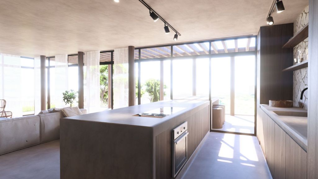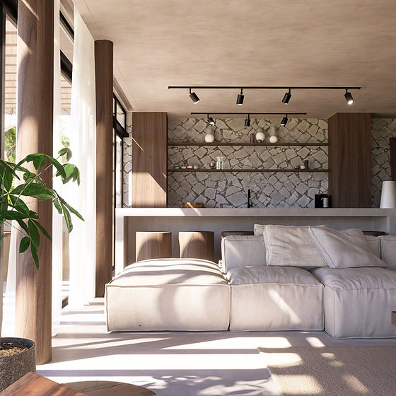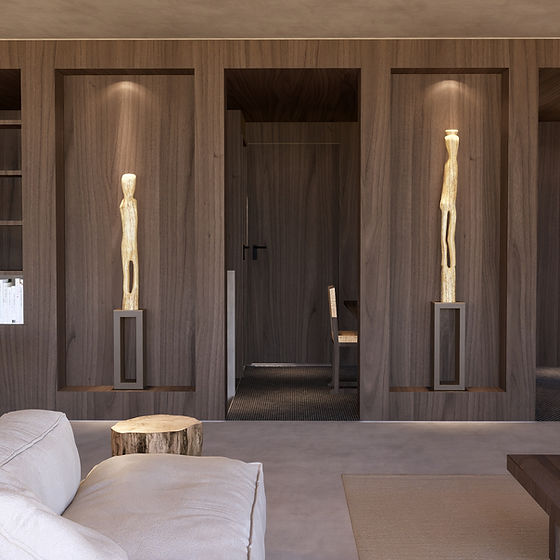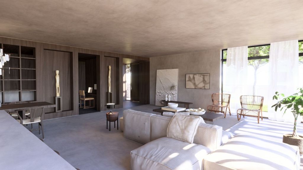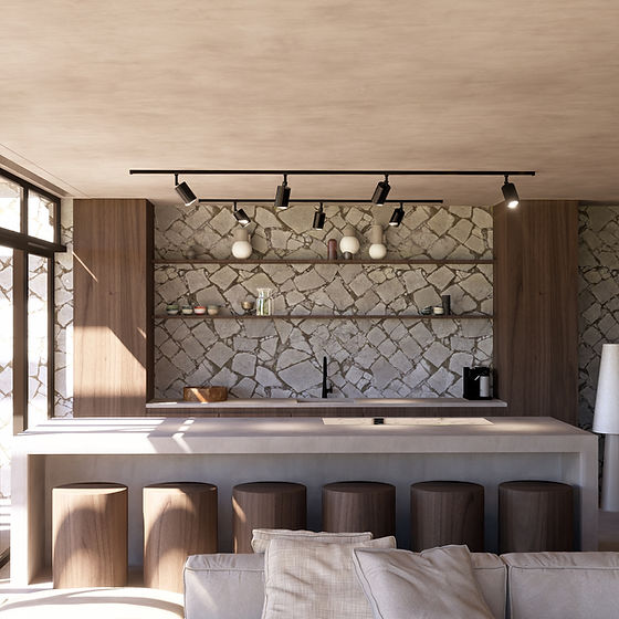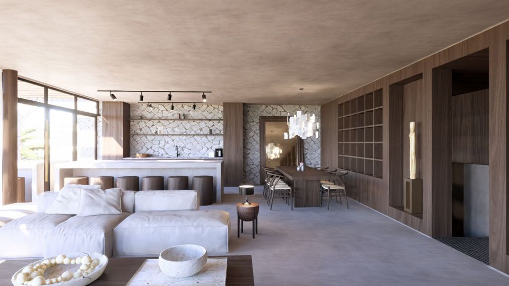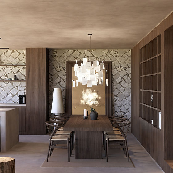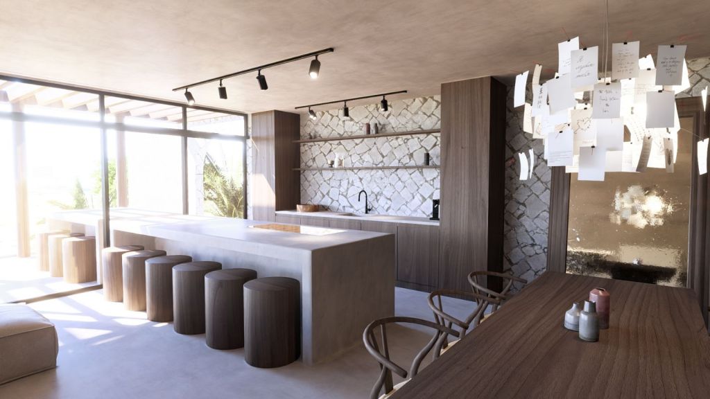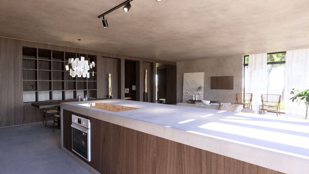 Ce projet se distingue par son esthétique sobre, inspirée des éléments naturels. Les matériaux nobles tels que le bois massif de noyer, les pierres calcaires sèches évoquant les sentiers de Marcel Pagnol, et les matériaux bruts sont harmonieusement intégrés.