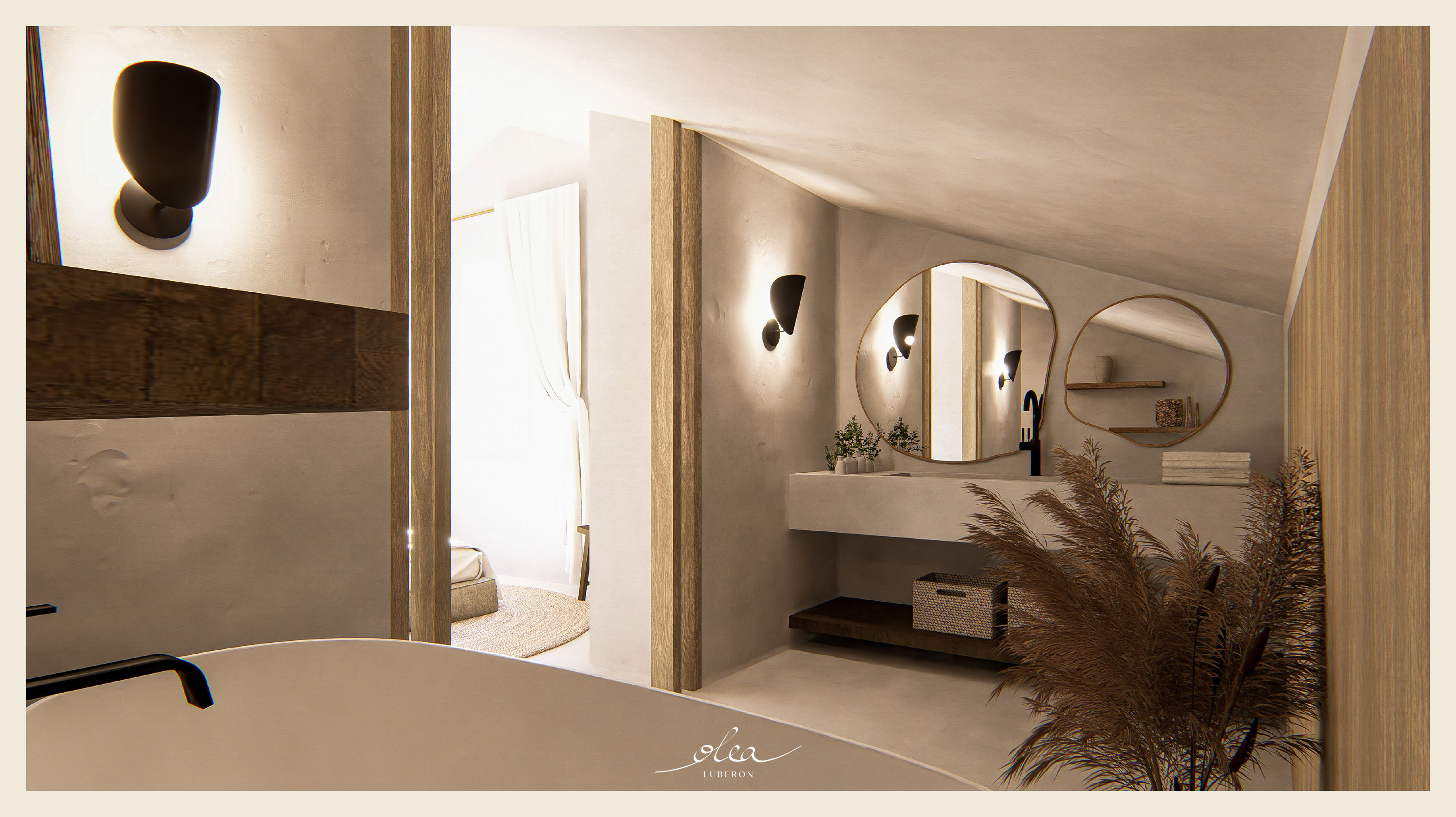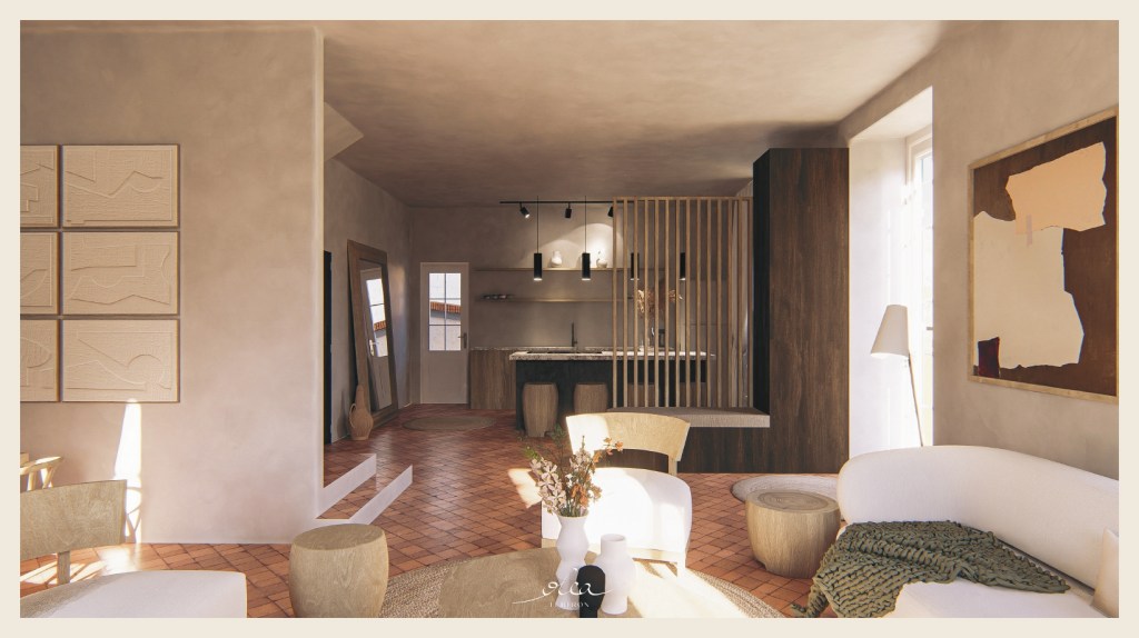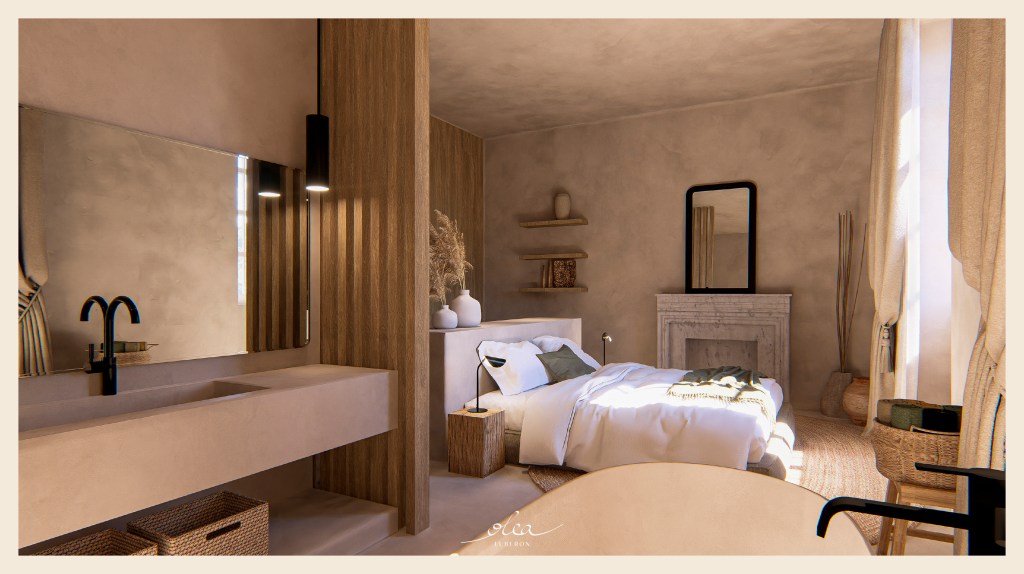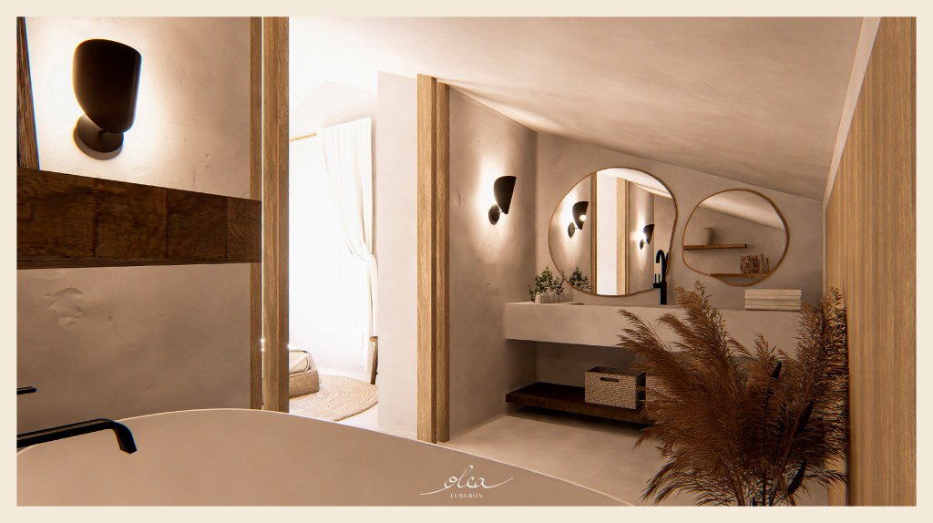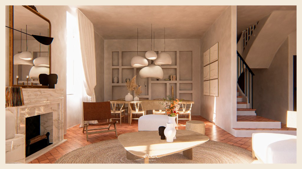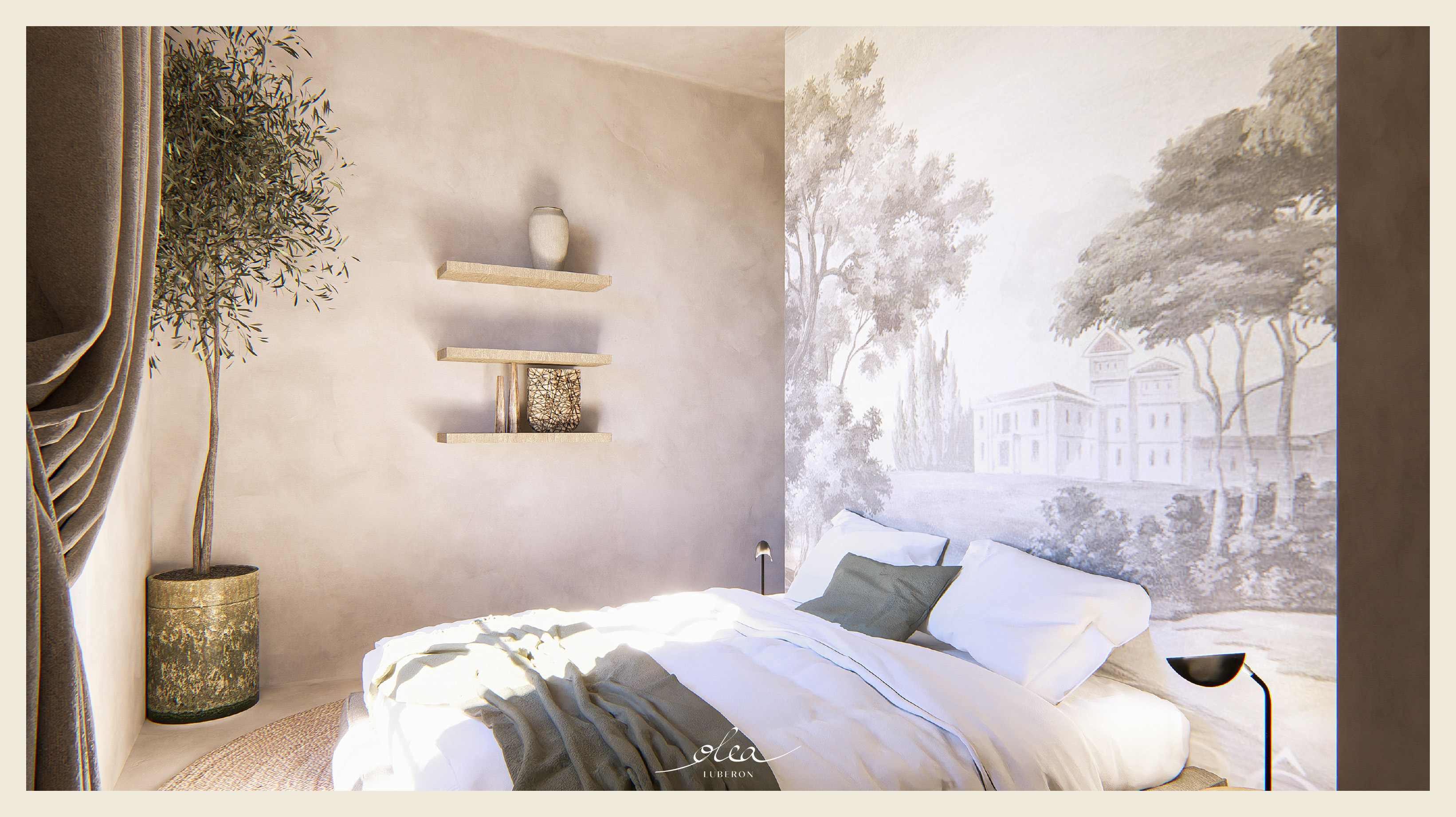 Ce projet patrimonial concerne la rénovation d’un ancien corps de ferme provençal de 350m² à Puyvert (84) dans le massif du Luberon. Le permis de construire a été approuvé par le service urbanisme en décembre 2023. La livraison s’est déroulée en juin 2024, avec un montant total de travaux de 350 000 euros. Cette rénovation s’inscrit dans le respect du patrimoine, en proposant une maison provençale à l’esthétique sobre, avec des enduits à la chaux de couleurs sable. Pour la bibliothèque, une technique innovante utilisant du siporex à poncer garantit un rendu naturel et sinueux. Actuellement en phase de travaux, vous pouvez suivre son évolution dans la section « Chantier » ou visualiser ci-dessous les photos du chantier actuel et les photomontages.