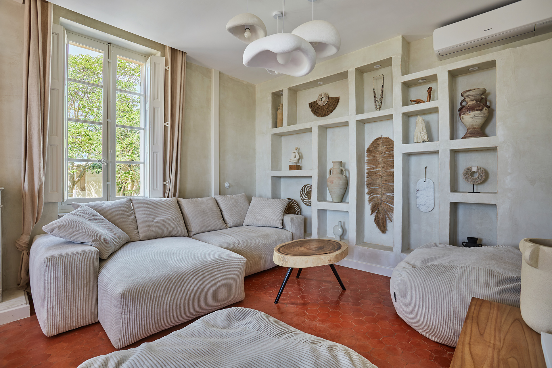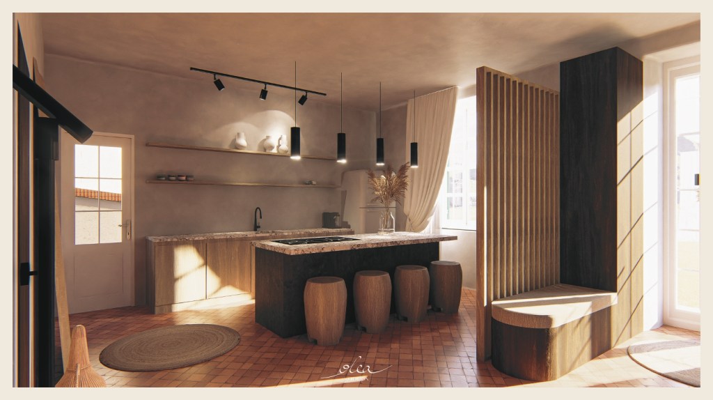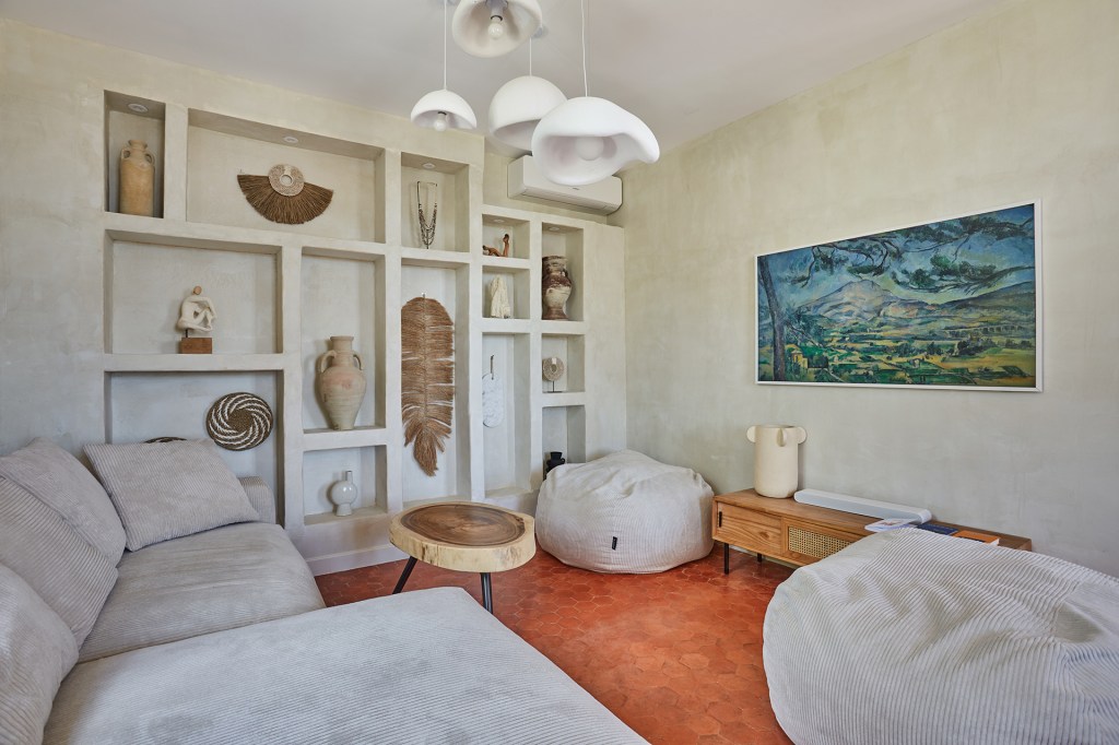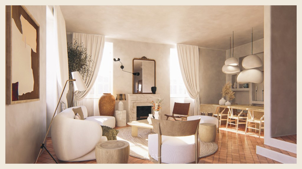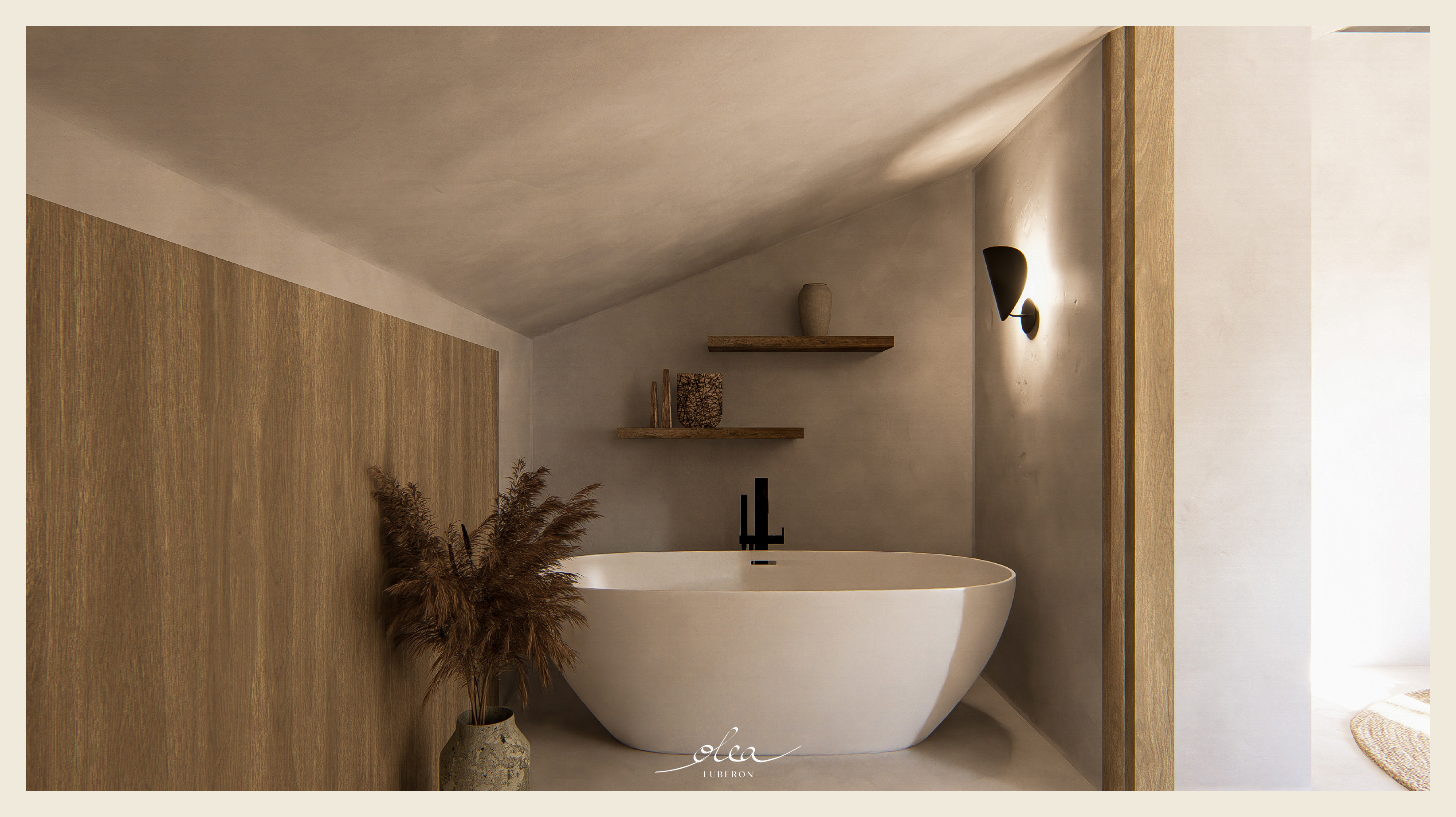 Ce projet patrimonial concerne la rénovation d’un ancien corps de ferme provençal de 350m² à Puyvert (84) dans le massif du Luberon. Le permis de construire a été approuvé par le service urbanisme en décembre 2023. La livraison s’est déroulée en juin 2024, avec un montant total de travaux de 350 000 euros. Cette rénovation s’inscrit dans le respect du patrimoine, en proposant une maison provençale à l’esthétique sobre, avec des enduits à la chaux de couleurs sable. Pour la bibliothèque, une technique innovante utilisant du siporex à poncer garantit un rendu naturel et sinueux. Actuellement en phase de travaux, vous pouvez suivre son évolution dans la section « Chantier » ou visualiser ci-dessous les photos du chantier actuel et les photomontages.