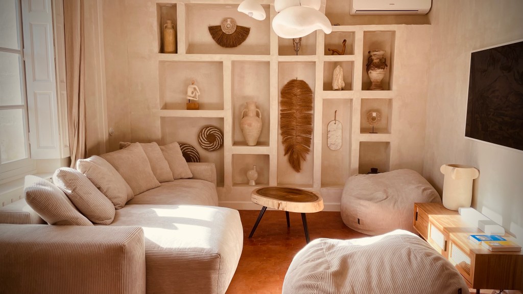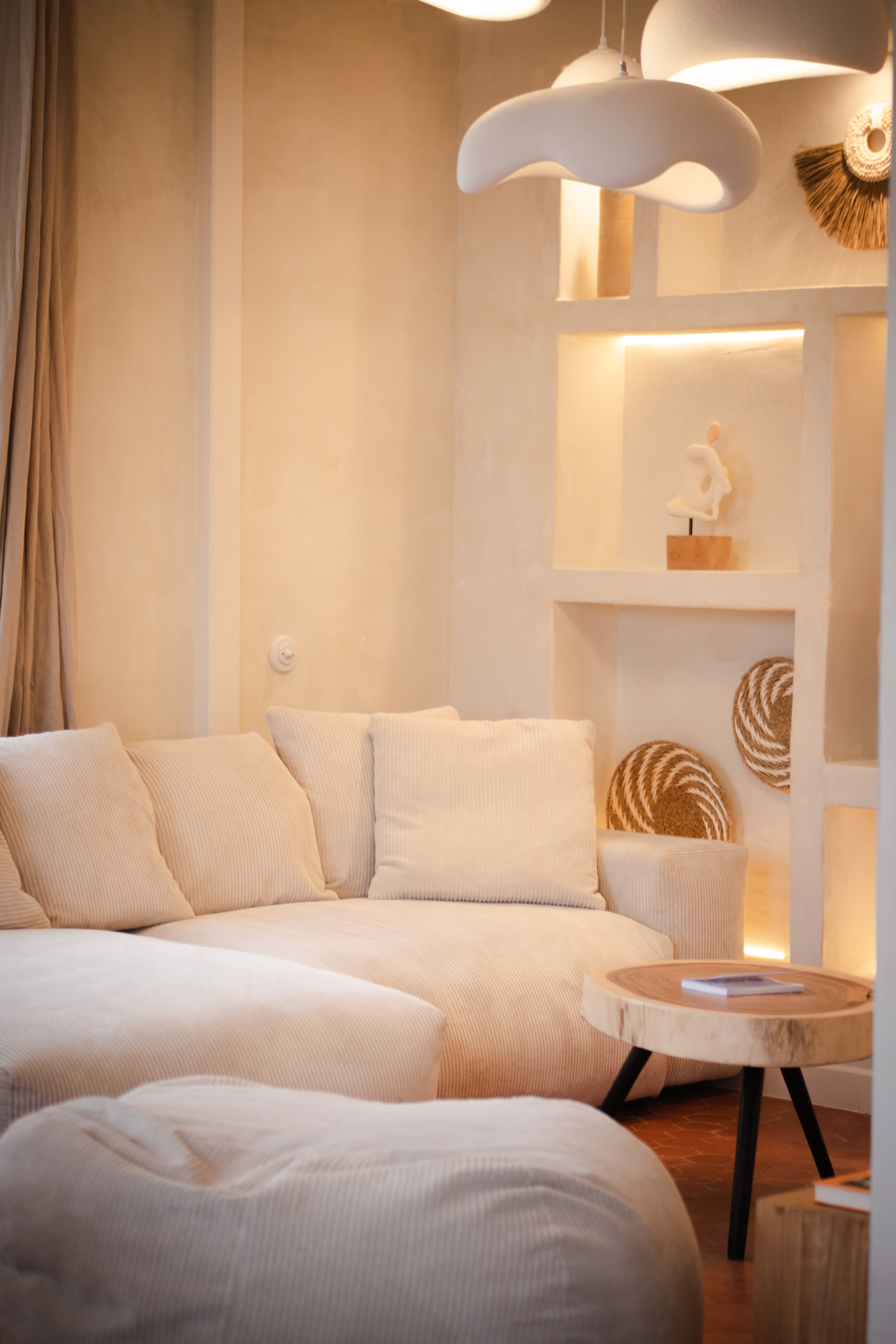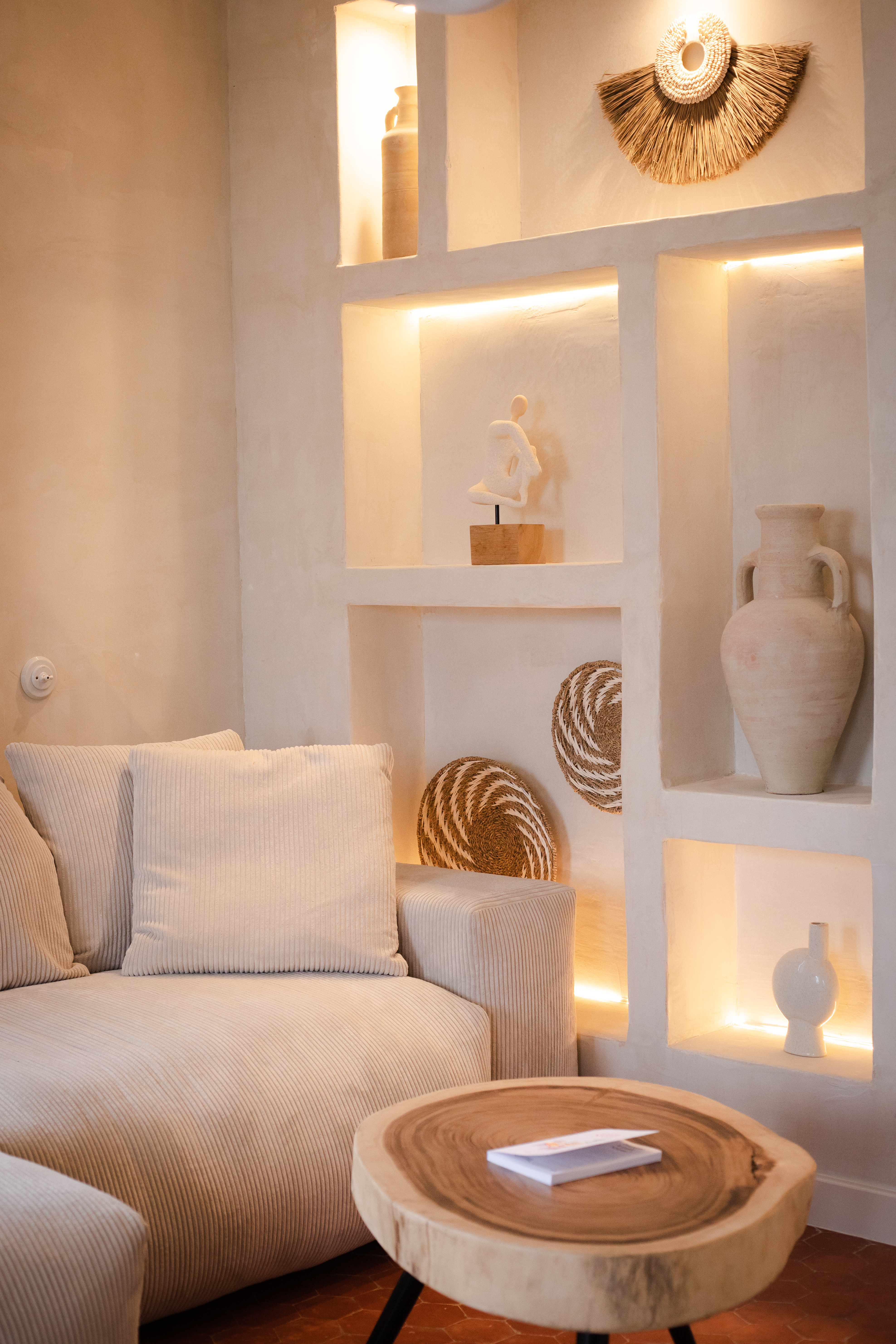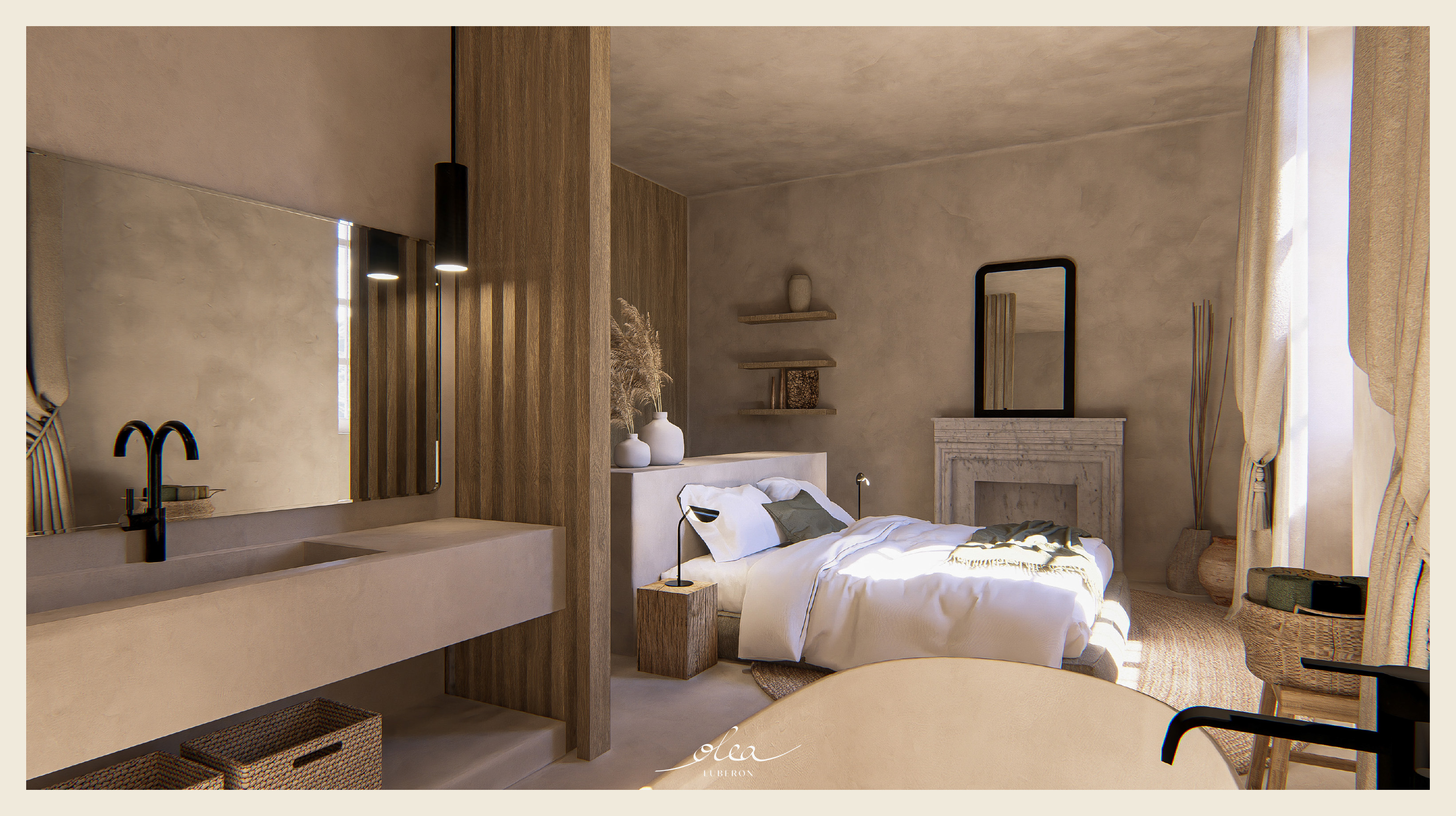 Ce projet patrimonial concerne la rénovation d’un ancien corps de ferme provençal de 350m² à Puyvert (84) dans le massif du Luberon. Le permis de construire a été approuvé par le service urbanisme en décembre 2023. La livraison s’est déroulée en juin 2024, avec un montant total de travaux de 350 000 euros. Cette rénovation s’inscrit dans le respect du patrimoine, en proposant une maison provençale à l’esthétique sobre, avec des enduits à la chaux de couleurs sable. Pour la bibliothèque, une technique innovante utilisant du siporex à poncer garantit un rendu naturel et sinueux. Actuellement en phase de travaux, vous pouvez suivre son évolution dans la section « Chantier » ou visualiser ci-dessous les photos du chantier actuel et les photomontages.