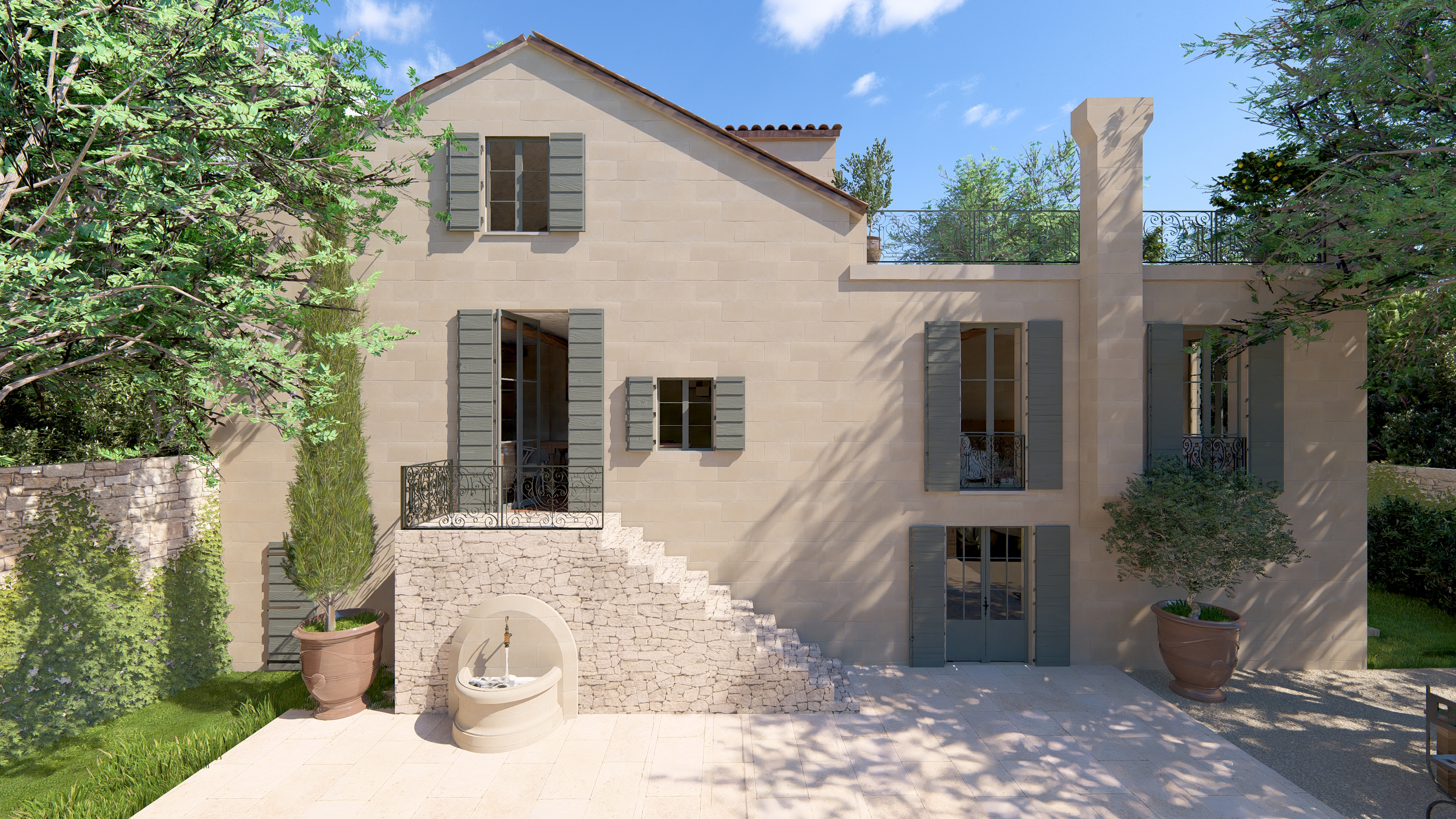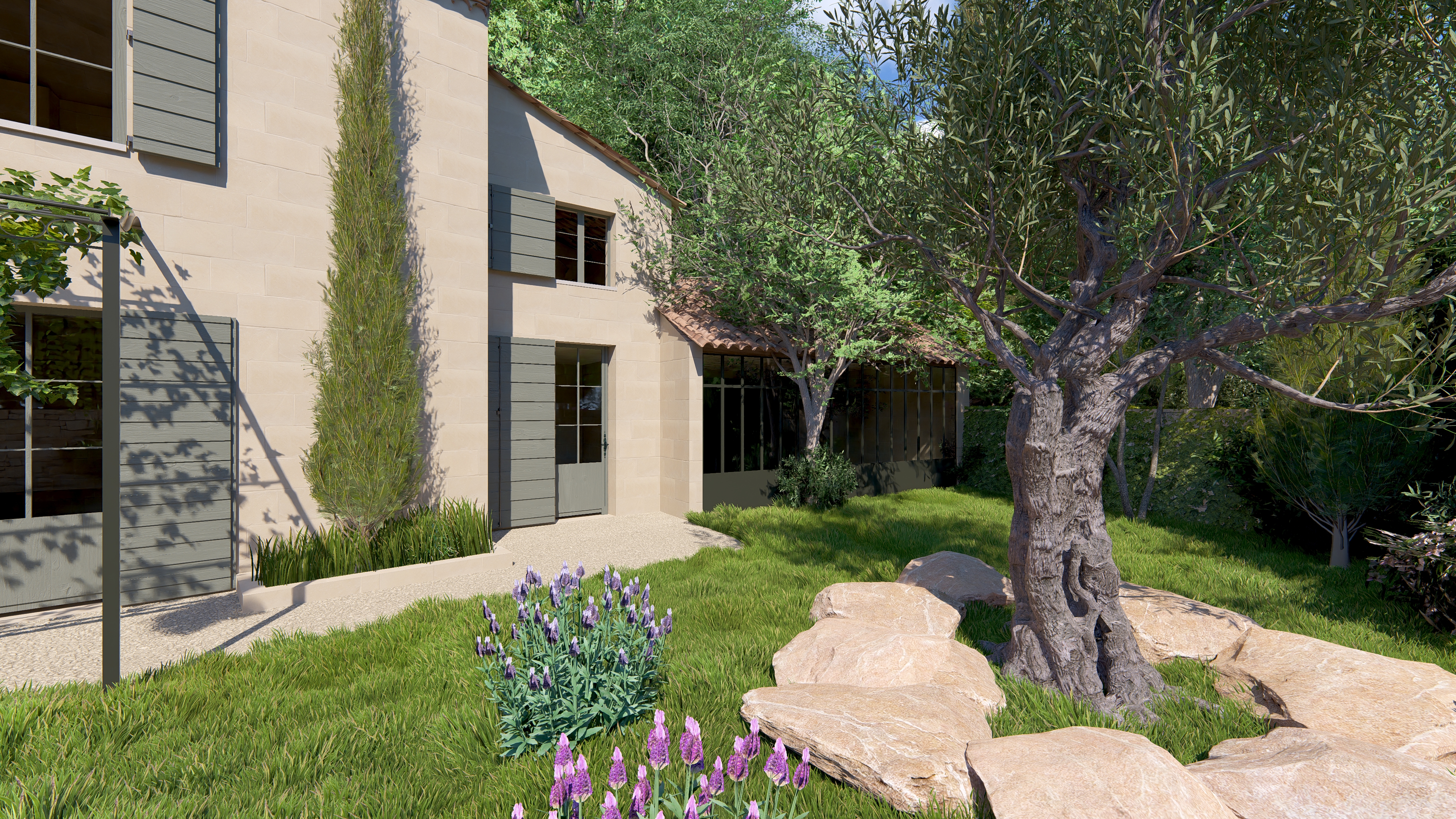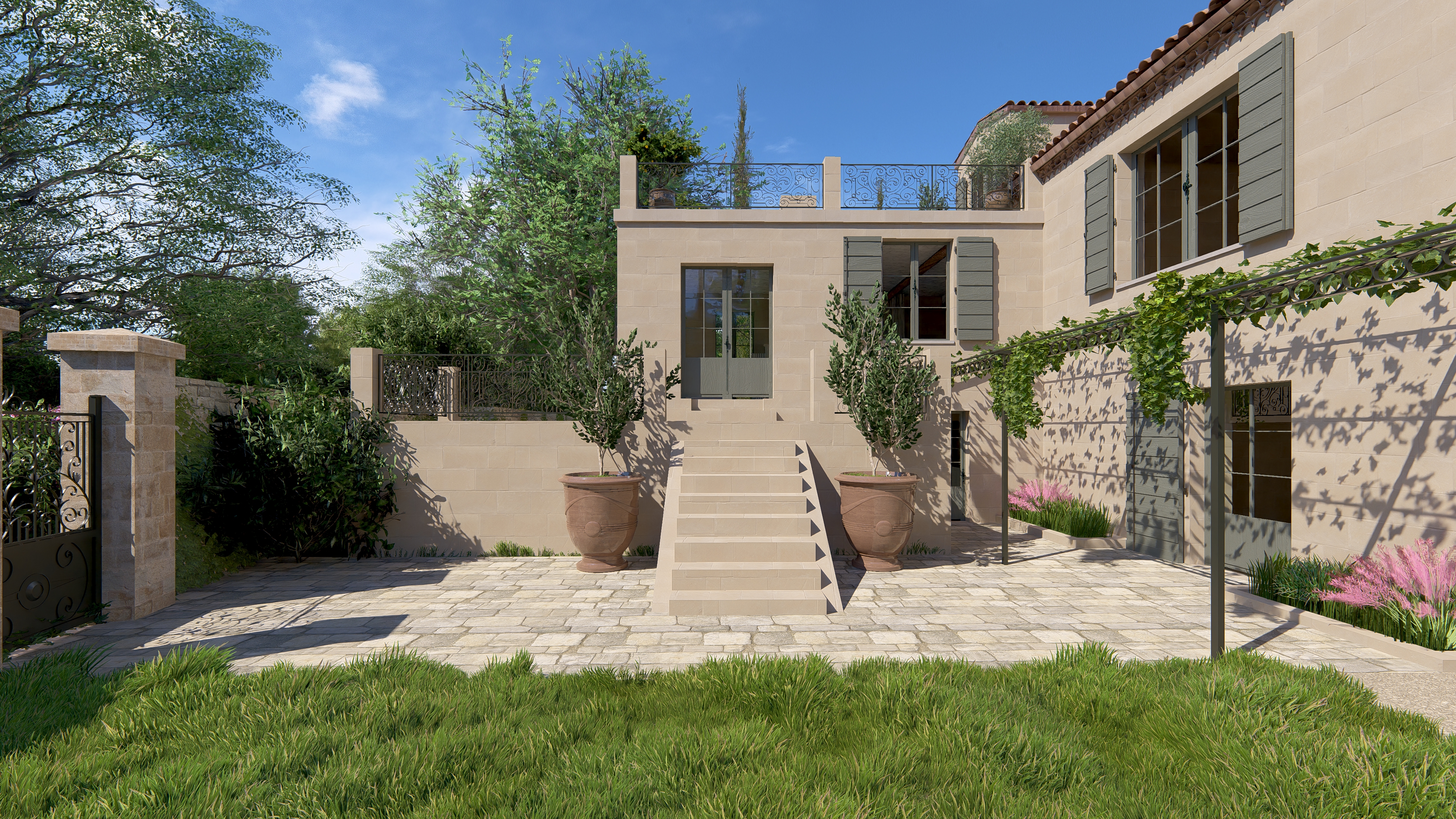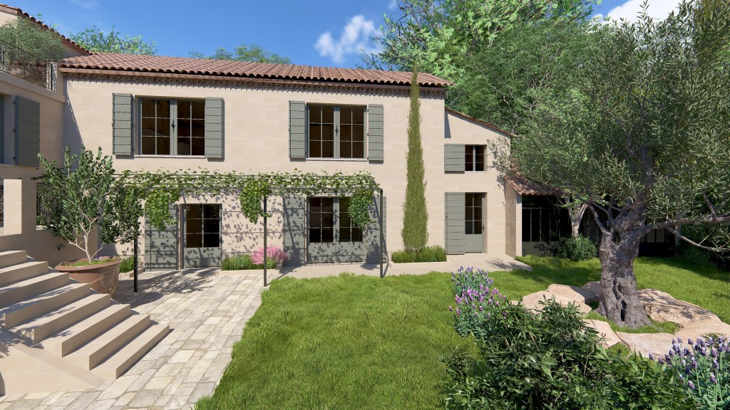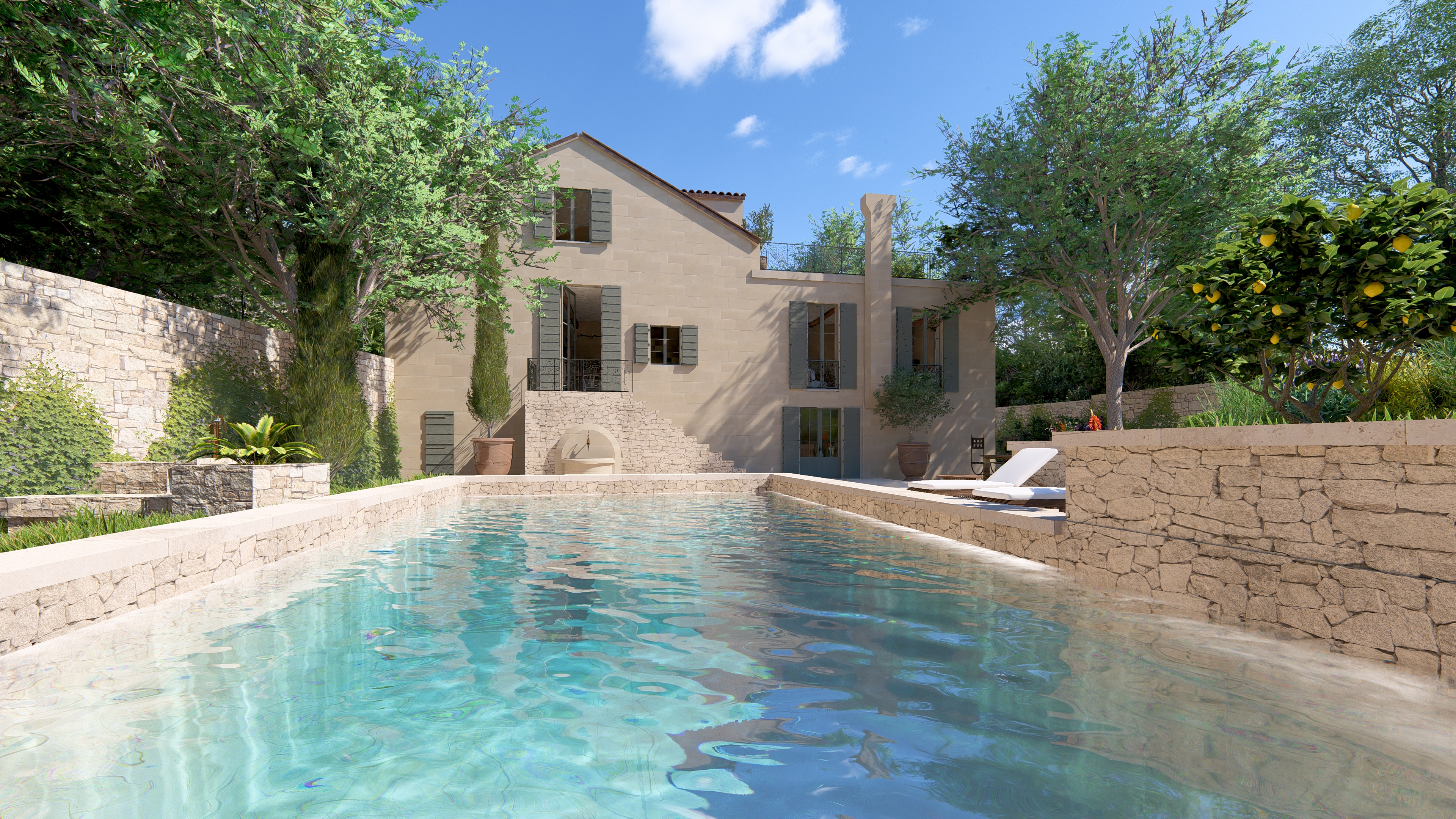 Projet de rénovation d’une maison individuelle de 330 m² située en secteur sauvegardé, en collaboration avec l’Architecte des Bâtiments de France. Aménagement du jardin avec la création d’une piscine bordée d’un muret en pierre calcaire, d’une margelle en granit et d’un revêtement en carrelage de type pierre de Bali. Aménagement du jardin avec des massifs de lavande, romarin, sauge, verveine, aloe vera et d’oliviers.