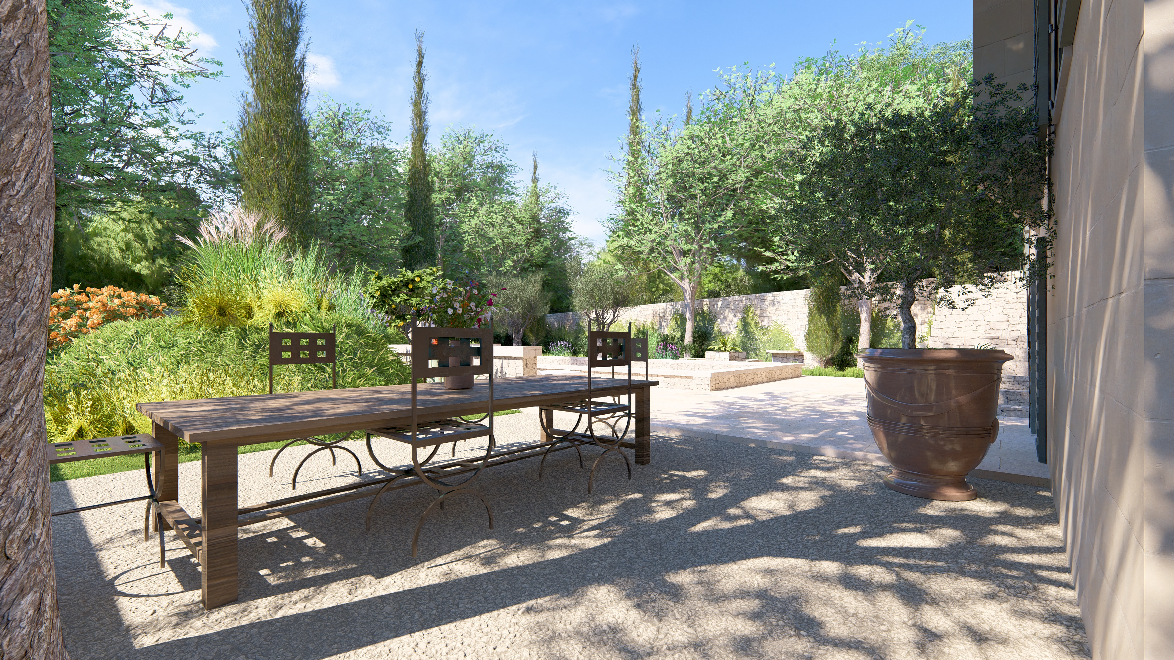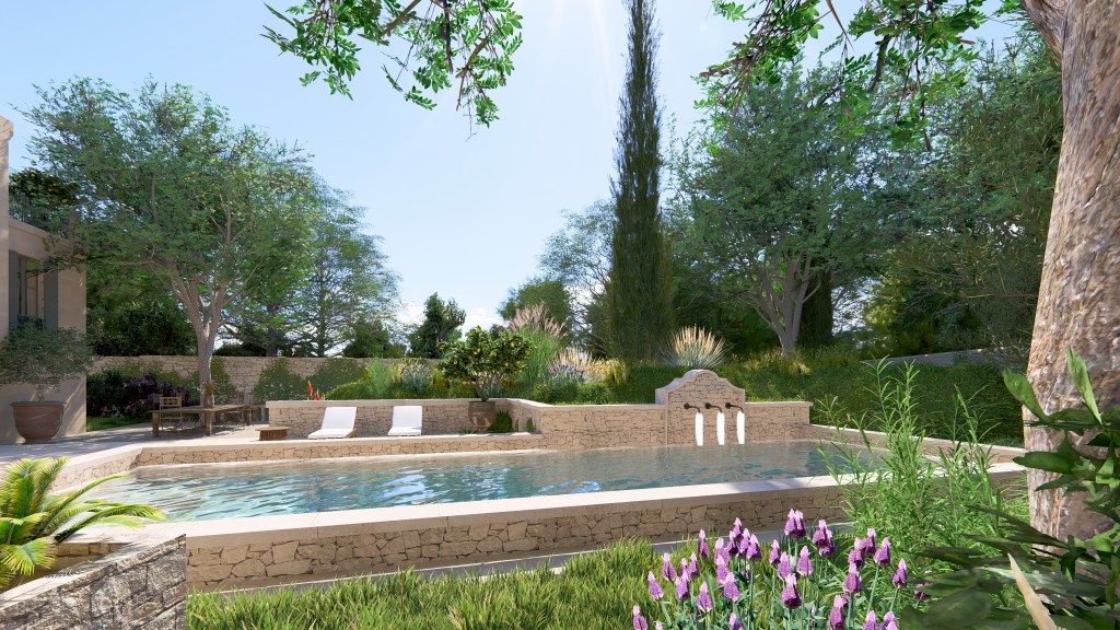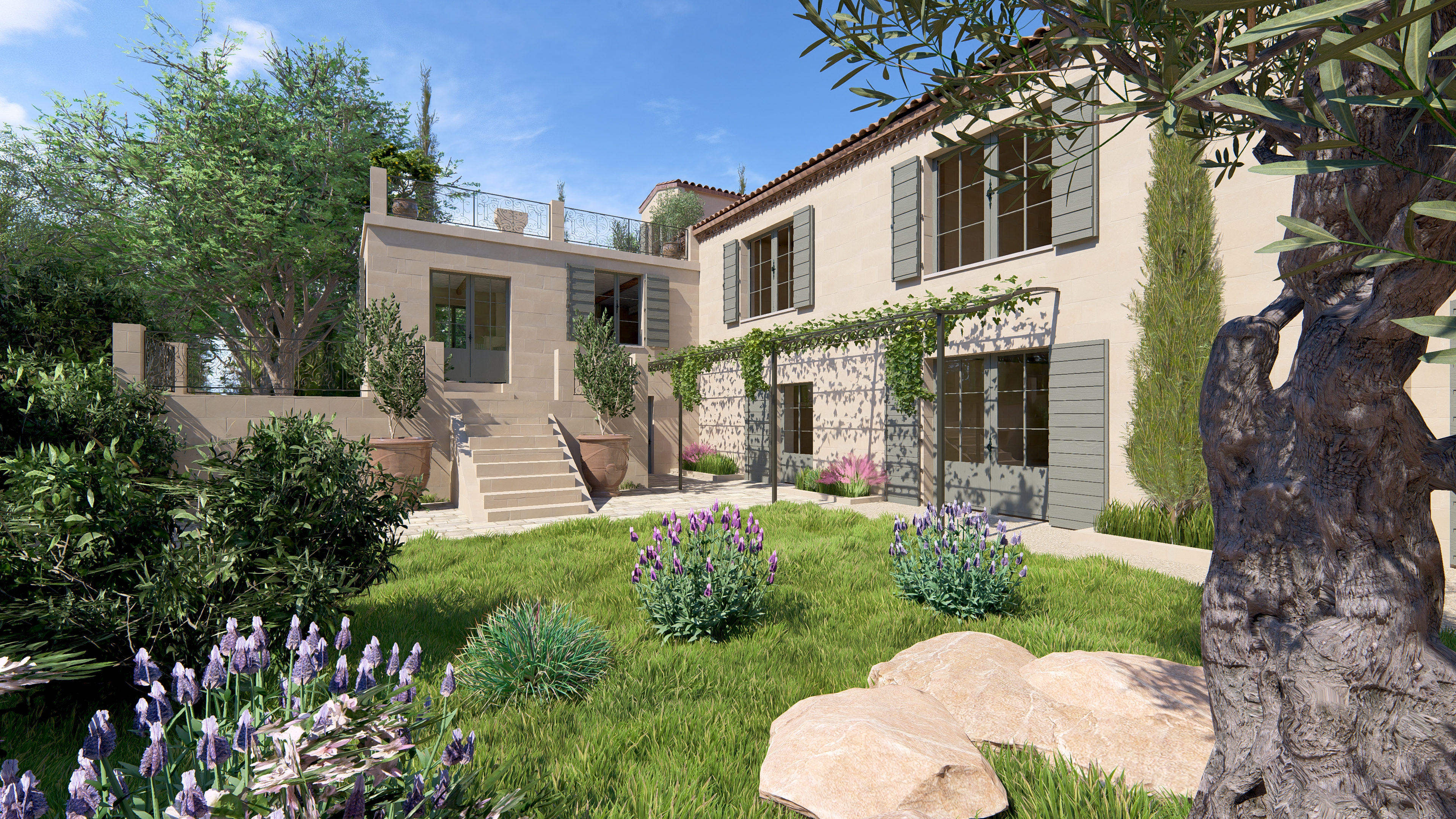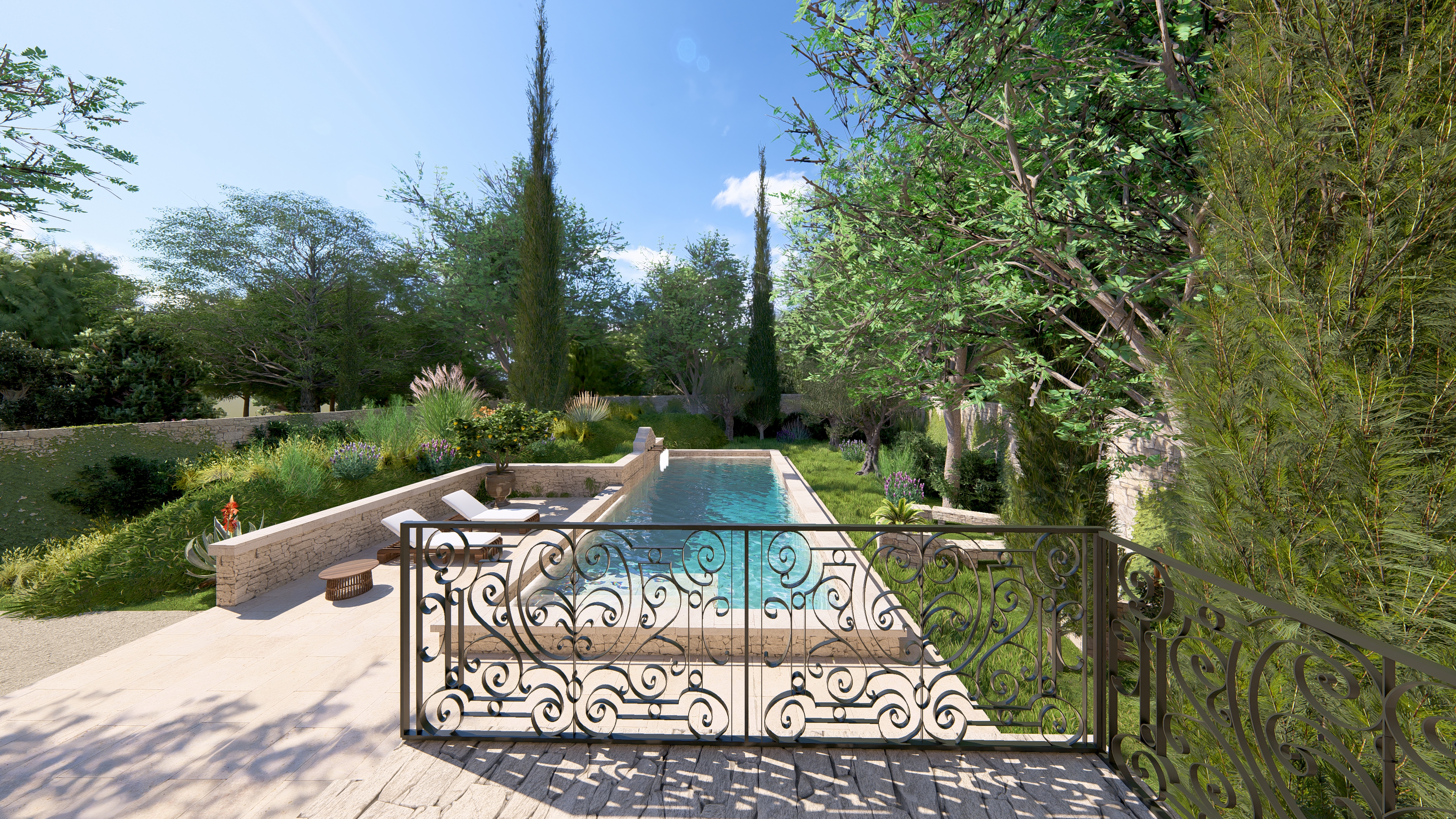 Projet de rénovation d’une maison individuelle de 330 m² située en secteur sauvegardé, en collaboration avec l’Architecte des Bâtiments de France. Aménagement du jardin avec la création d’une piscine bordée d’un muret en pierre calcaire, d’une margelle en granit et d’un revêtement en carrelage de type pierre de Bali. Aménagement du jardin avec des massifs de lavande, romarin, sauge, verveine, aloe vera et d’oliviers.